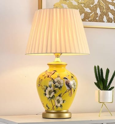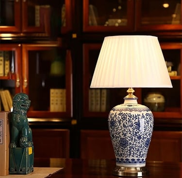 Living Room Elegance: Consider a large ceramic lamp with a bold pattern. Placed on an end table or console, it can serve as a statement piece that draws the eye and complements your furniture.